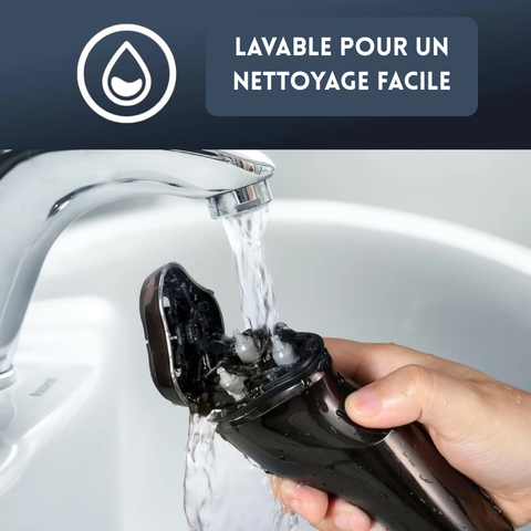 Pas du tout. La tête de rasage est détachable et lavable à l’eau. Tu peux la passer sous le robinet en quelques secondes. Le rasoir reste propre et prêt pour la prochaine utilisation.